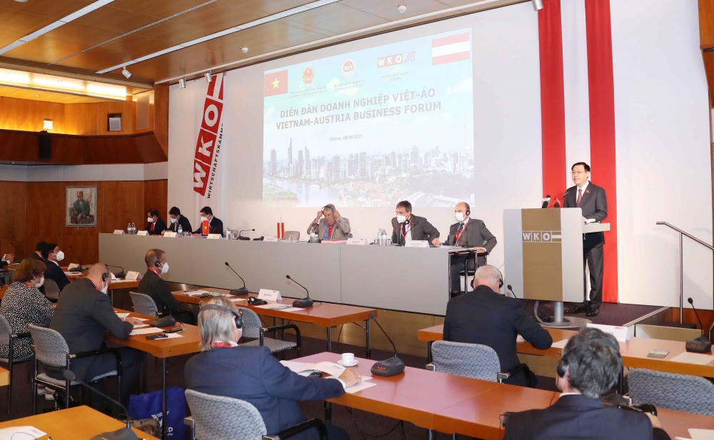 Chủ tịch Quốc hội nêu, việc hai bên kết hợp với nhau sẽ có nhiều lợi ích. Áo có thể trở thành cầu nối giúp Việt Nam tiếp cận thị trường EU, đồng thời, Việt Nam sẽ trở thành cầu nối giúp Áo tiếp cận thị trường ASEAN rộng lớn với hơn 650 triệu dân và một thị trường lớn hơn nữa với 800 triệu dân khi Hiệp định đối tác toàn diện và tiến bộ xuyên Thái Bình Dương (CPTPP), mà Việt Nam là thành viên, đã có hiệu lực.