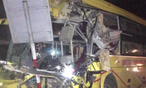 Sau cú tông mạnh vào đuôi xe container chạy cùng chiều, tài xế và một…