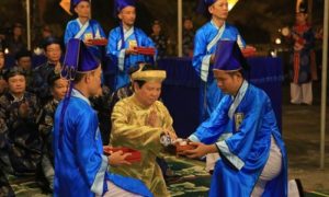 Trong trang phục áo dài khăn đóng, ông Nguyễn Dung, Phó chủ tịch tỉnh Thừa…