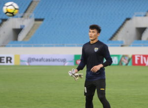 Thủ môn Bùi Tiến Dũng khá thoải mái trong buổi tập trước trận gặp Yangon…