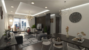 Sàn phòng khách và phòng ngủ lát gỗ công nghiệp dày 12mm, thiết bị điện…