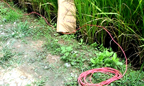 Khi đến rẫy cà chua, Huy không biết hàng xóm có bẫy chuột bằng điện nên lội vào, bị điện giật tử vong.