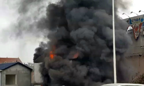 Ngọn lửa kèm theo khói bao trùm ngôi nhà 3 tầng. Ảnh: Văn Vệ |