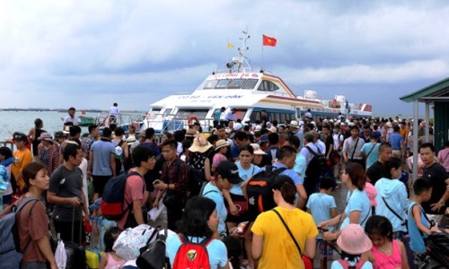 Hàng chục chuyến tàu được huy động đưa du khách từ đảo Cô Tô về đất liền. Ảnh: Hoàng Phương |