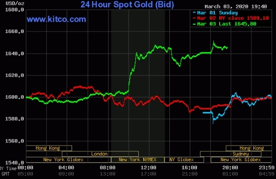 Trong phiên giao dịch ở Mỹ tối 3/3, giá vàng thế giới tăng hơn 3% – mạnh nhất kể từ giữa năm 2016 sau khi Fed hạ lãi suất cứu nền kinh tế.