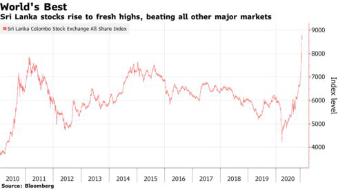 Trong đợt bán tháo hồi tháng 3, CSE All Share Index của Sri Lanka đã chứng kiếm mức giảm 32%, chủ yếu là tác động từ sụt giảm du lịch, bất ổn chính trị gia tăng và lo ngại về nợ. Kể từ đó, ngân hàng Trung ương nước này đã cắt giảm 200 điểm lãi suất cơ bản và gia tăng thanh khoản, giúp quốc đảo này vượt qua suy thoái. Nước này, thậm chí đã mở lại các sân bay phục vụ khách du lịch quốc tế.