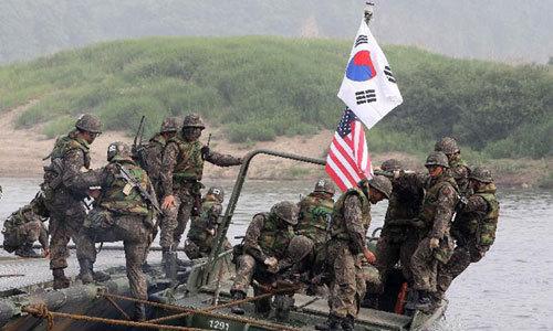 Lính Mỹ và Hàn Quốc trong một cuộc diễn tập chung. Ảnh: Yonhap. |