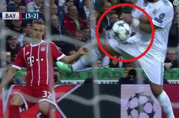 Khi hiệp 1 chỉ còn tính bằng giây, Bayern Munich tổ chức tấn công bên cánh phải. Sau quả tạt của Kimmich vào khu vực cấm địa, hậu vệ Marcelo để bóng chạm tay. Tuy nhiên, trọng tài Cuneyt Cakir từ chối thổi phạt penalty đối với Real Madrid trước sự phản ứng của cầu thủ Bayern Munich