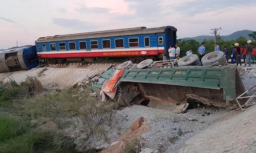 Vụ tai nạn giữa tàu hoả và xe ben chở đá khiến đầu tàu và 7 toa bị lật, trong đó có 4 toa chở hành khách.