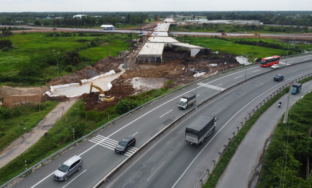 Gói thầu XL04, nút giao Thân Cửu Nghĩa (Châu Thành) sắp hoàn thành, kết nối với cao tốc Trung Lương. Ảnh: Hoàng Nam.
